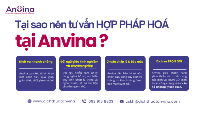 Nếu doanh nghiệp của bạn đang chuẩn bị đầu tư, mở văn phòng đại diện, hoặc ký kết hợp đồng thương mại liên quan đến nhiều quốc gia, hãy để Anvina đồng hành xử lý dịch thuật – hợp pháp hóa lãnh sự trọn gói.